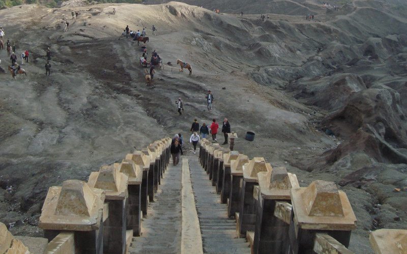 We vertrekken naar Bromo om 1 uur 's nachts. Van Malang we gaan naar Sukapura, Probolinggo. Dan moeten we overstappen met de jeep naar Pananjakan zo'n 2700 meter boven de zeespiegel. Het is de ideale plaats om de zonsopgang te zien. Vanaf dit punt zien we veel bergen zoals de Batok, de Semeru, de Bromo en de Wellirang. Het is een zeer spectaculair uitzicht. Daarna gaan we naar de Bromo vulkaan, deze ligt ten zuiden van Pananjakan, u gaat het laatste stuk per paard naar de Bromo kraterrand!